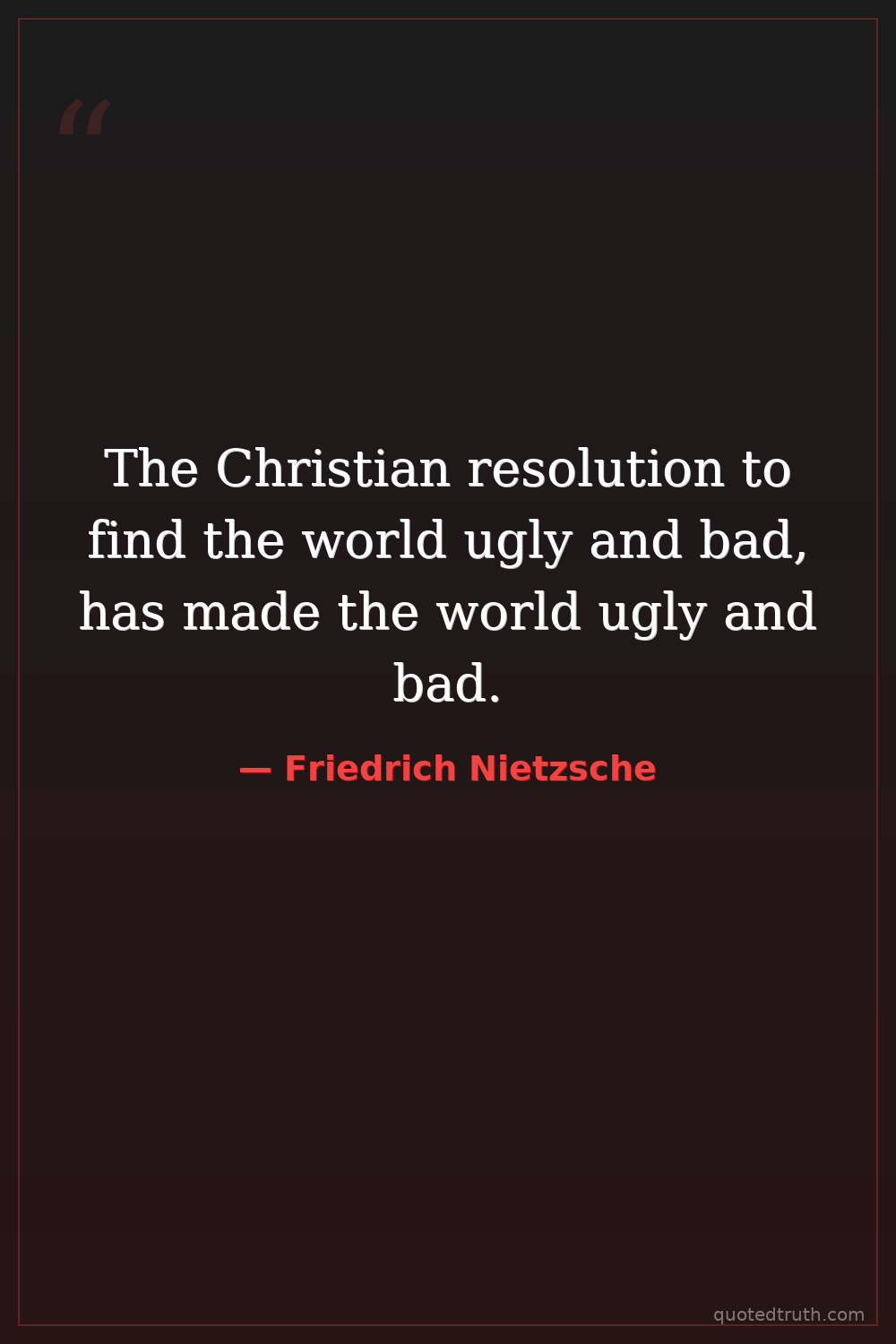The Christian resolution to find the world ugly and bad, has made the world ugly and bad.