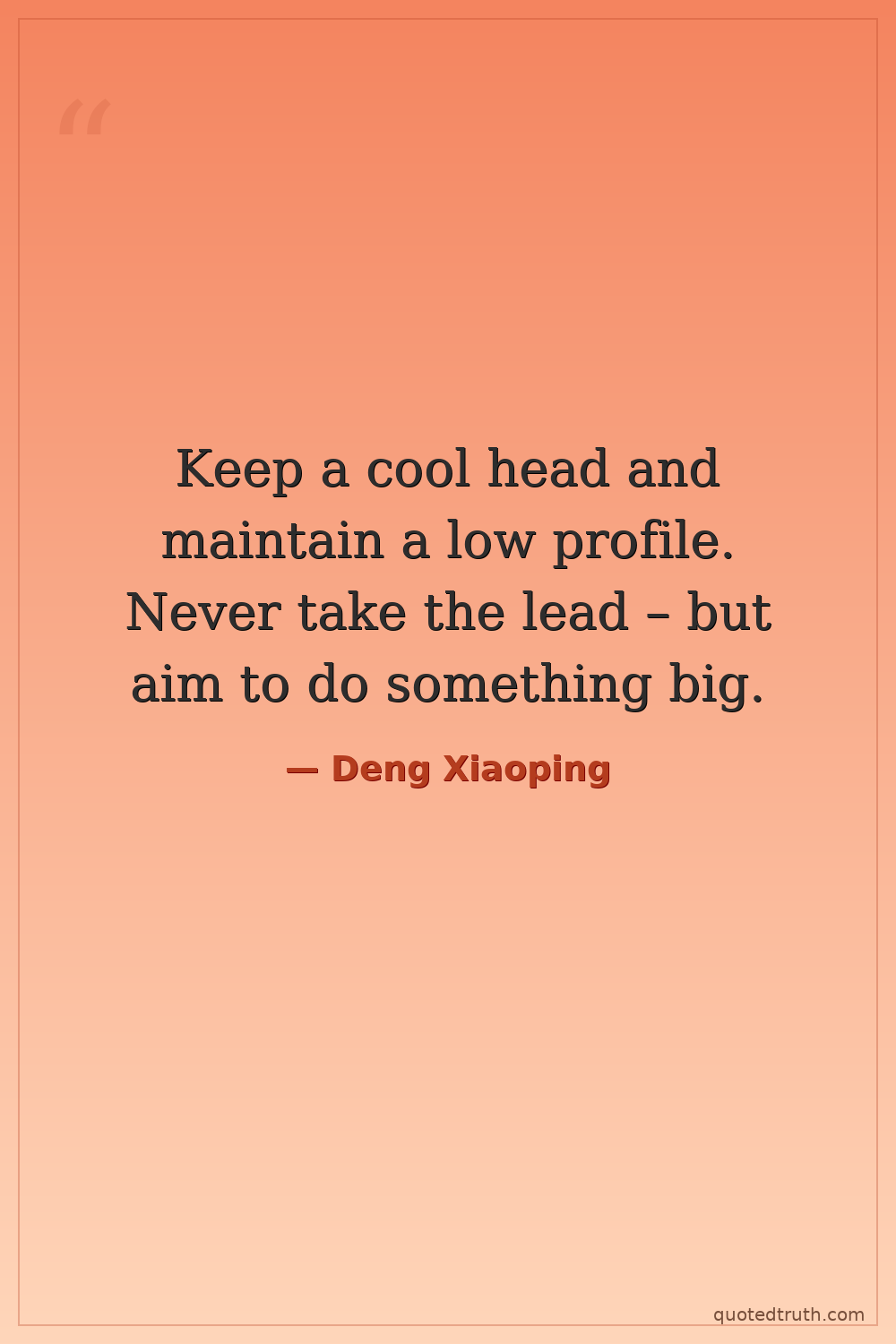 Foreign policy strategy, known as 'hide your strength, bide your time' (韬光养晦).