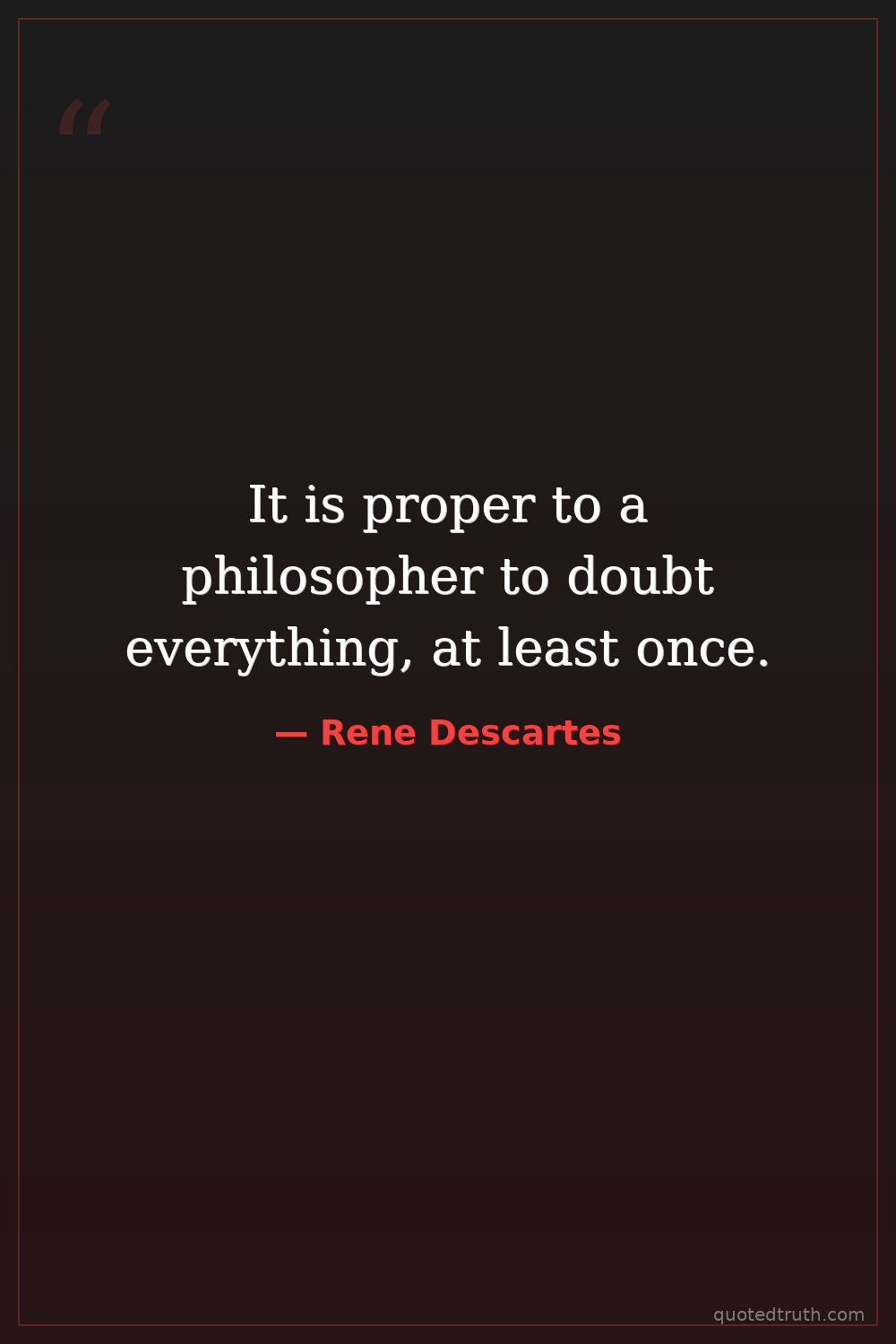 Controversial"The first precept was never to accept a thing as true until I knew it as such without a single doubt."