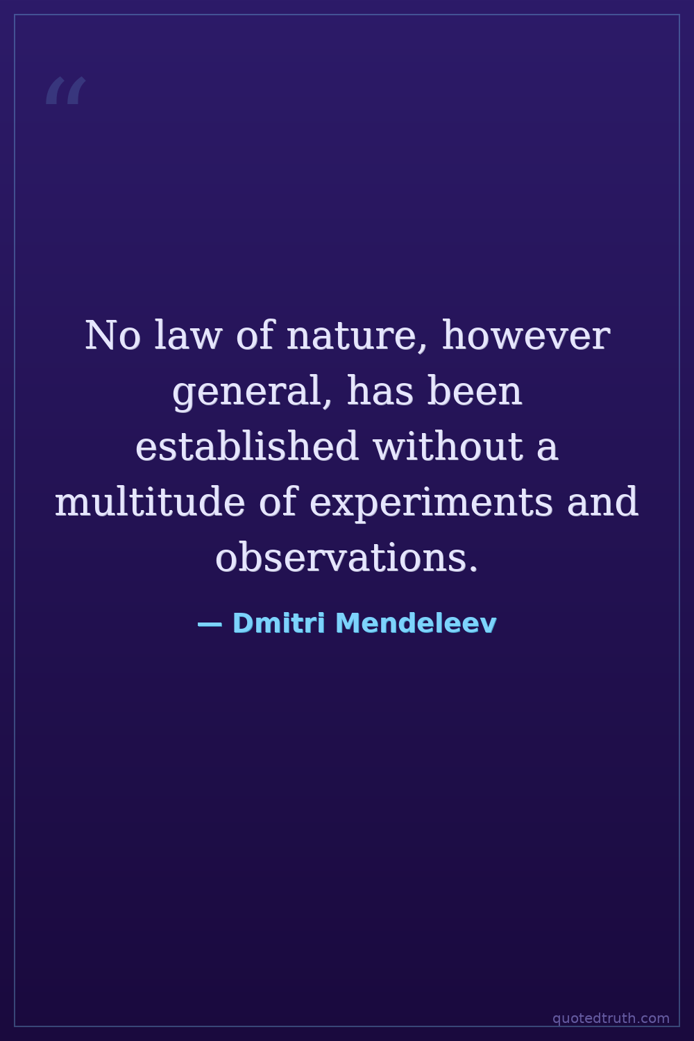 No law of nature, however general, has been established without a multitude of experiments and observations.