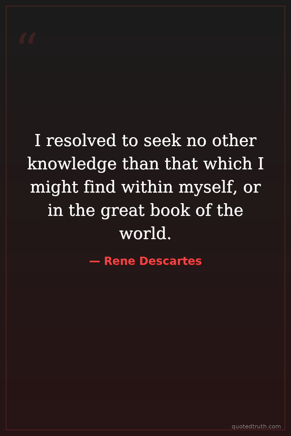 I resolved to seek no other knowledge than that which I might find within myself, or in the great book of the world.