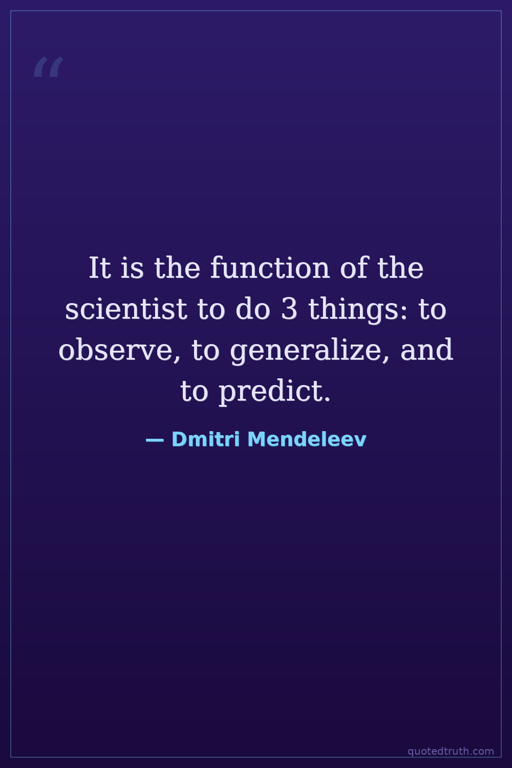 It is the function of the scientist to do 3 things: to observe, to generalize, and to predict.