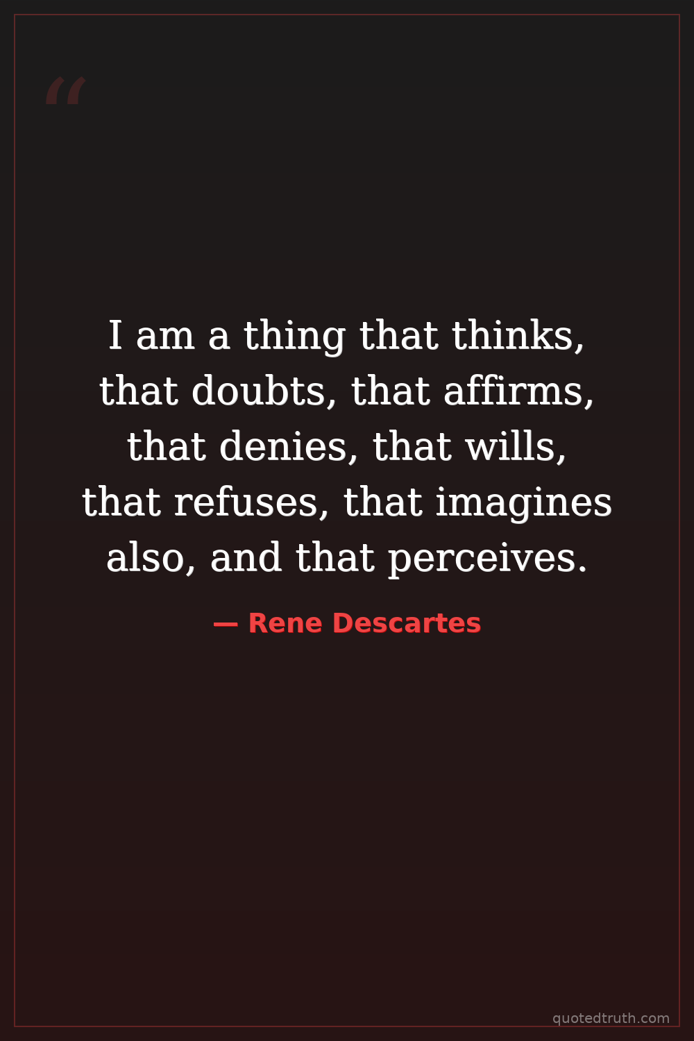I am a thing that thinks, that doubts, that affirms, that denies, that wills, that refuses, that imagines also, and that perceives.