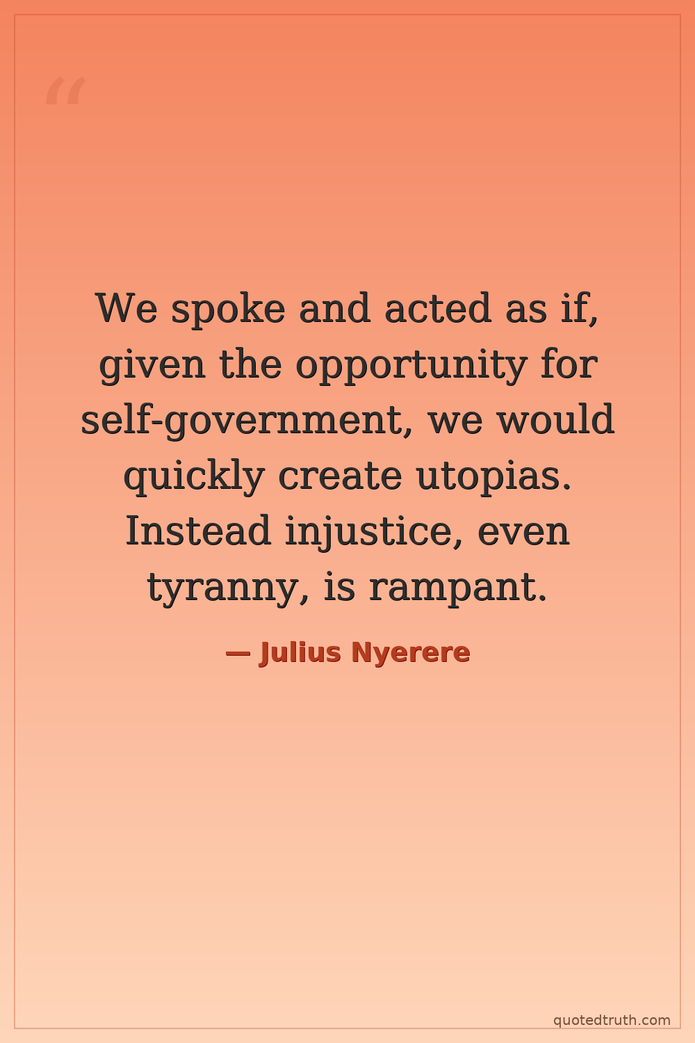 We spoke and acted as if, given the opportunity for self-government, we would quickly create utopias. Instead injustice, even tyranny, is rampant.