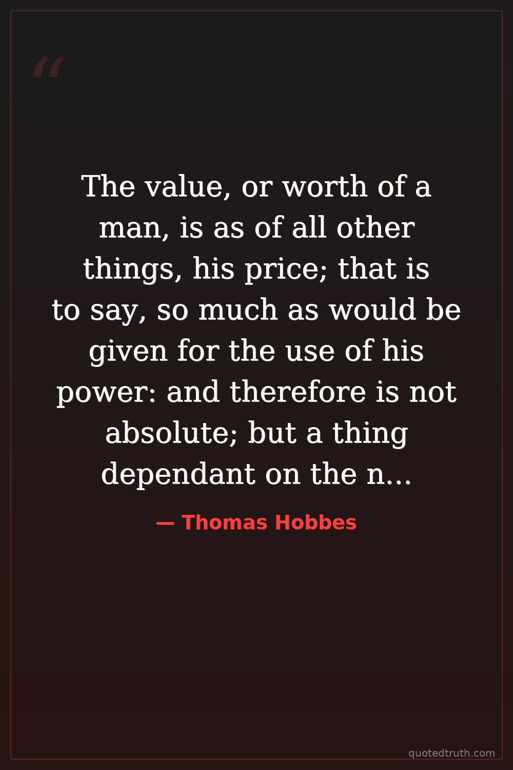 The value, or worth of a man, is as of all other things, his price; that is to say, so much as would be given for the use of his power: and therefore is not absolute; but a thing dependant on the need and judgement of another. — Thomas Hobbes Early Modern Leviathan, social contract