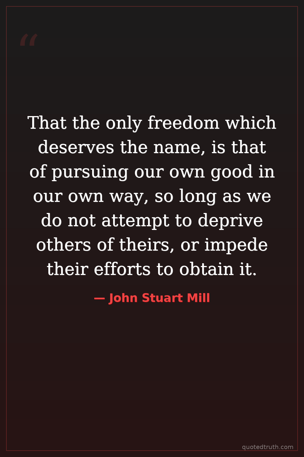That the only freedom which deserves the name, is that of pursuing our own good in our own way, so long as we do not attempt to deprive others of theirs, or impede their efforts to obtain it.