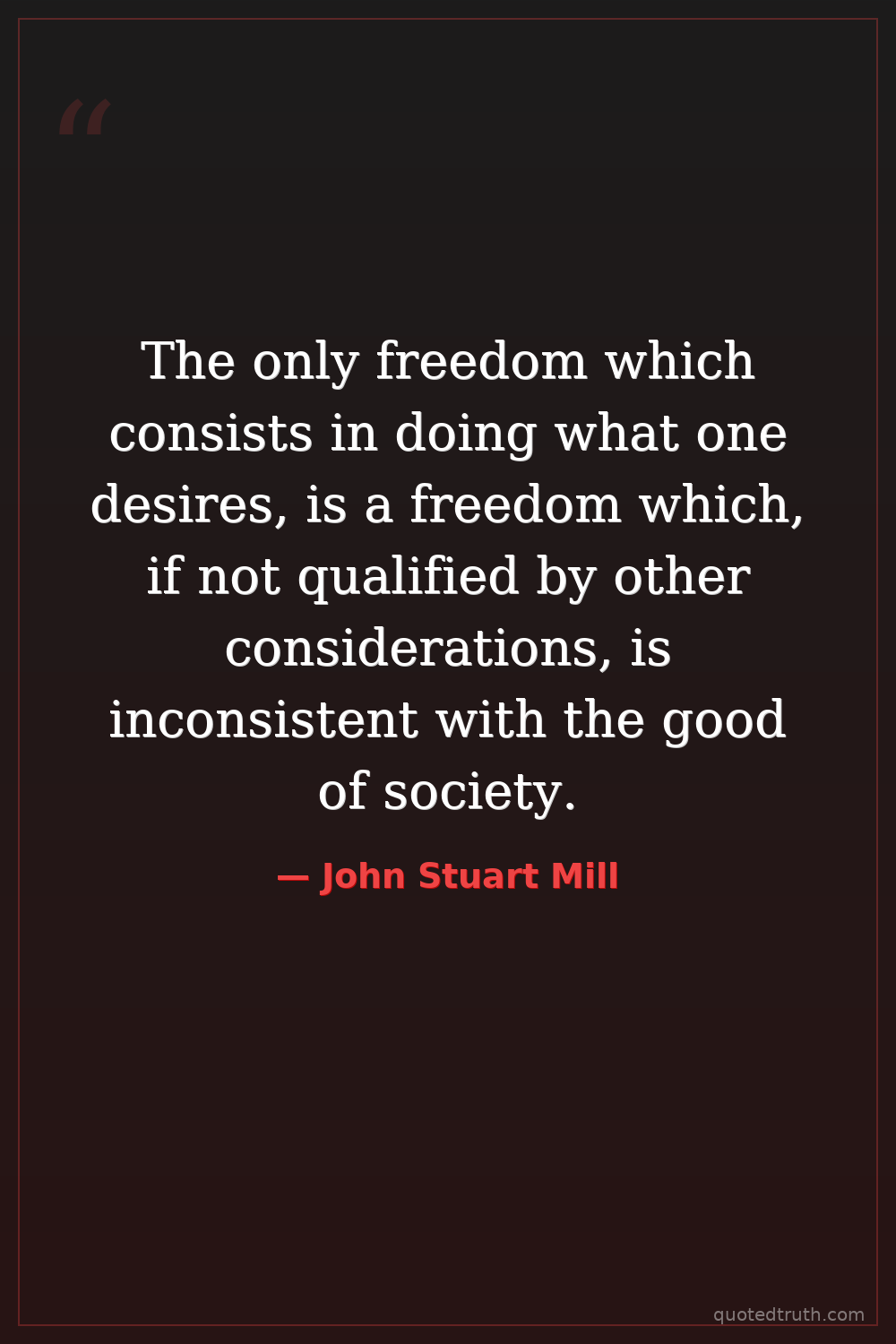 The only freedom which consists in doing what one desires, is a freedom which, if not qualified by other considerations, is inconsistent with the good of society.