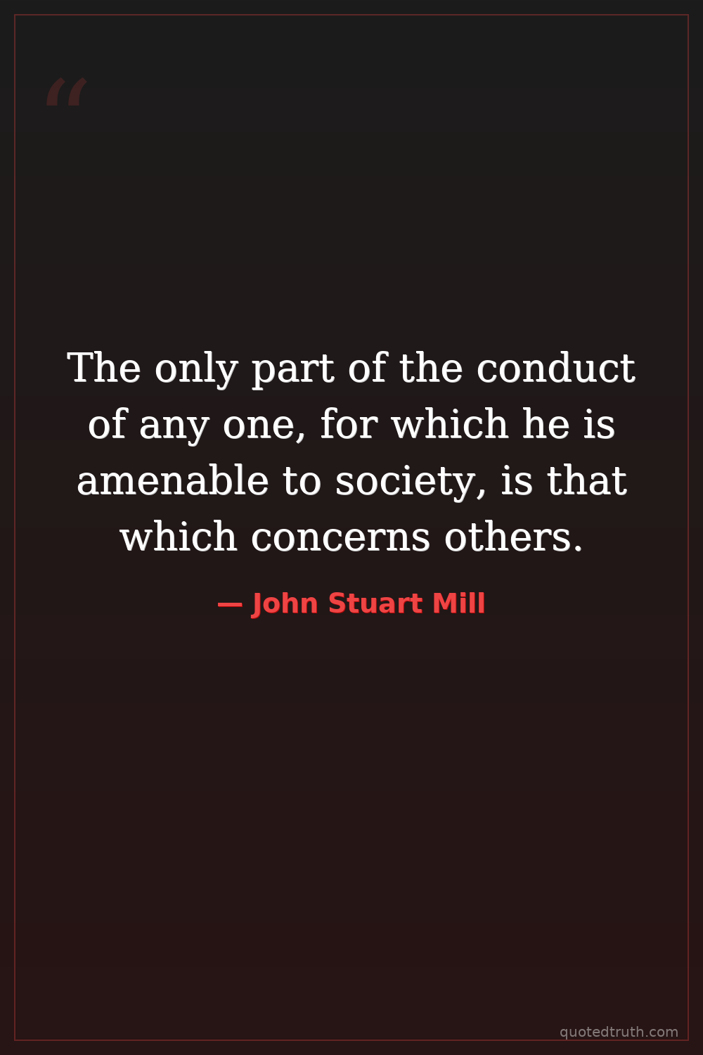 The only part of the conduct of any one, for which he is amenable to society, is that which concerns others.