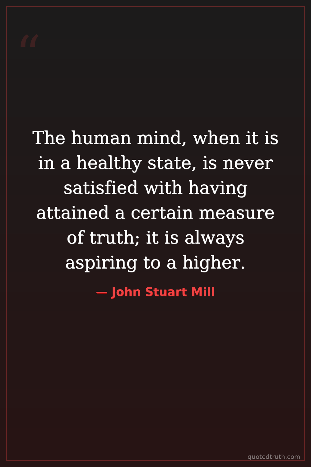 The human mind, when it is in a healthy state, is never satisfied with having attained a certain measure of truth; it is always aspiring to a higher.