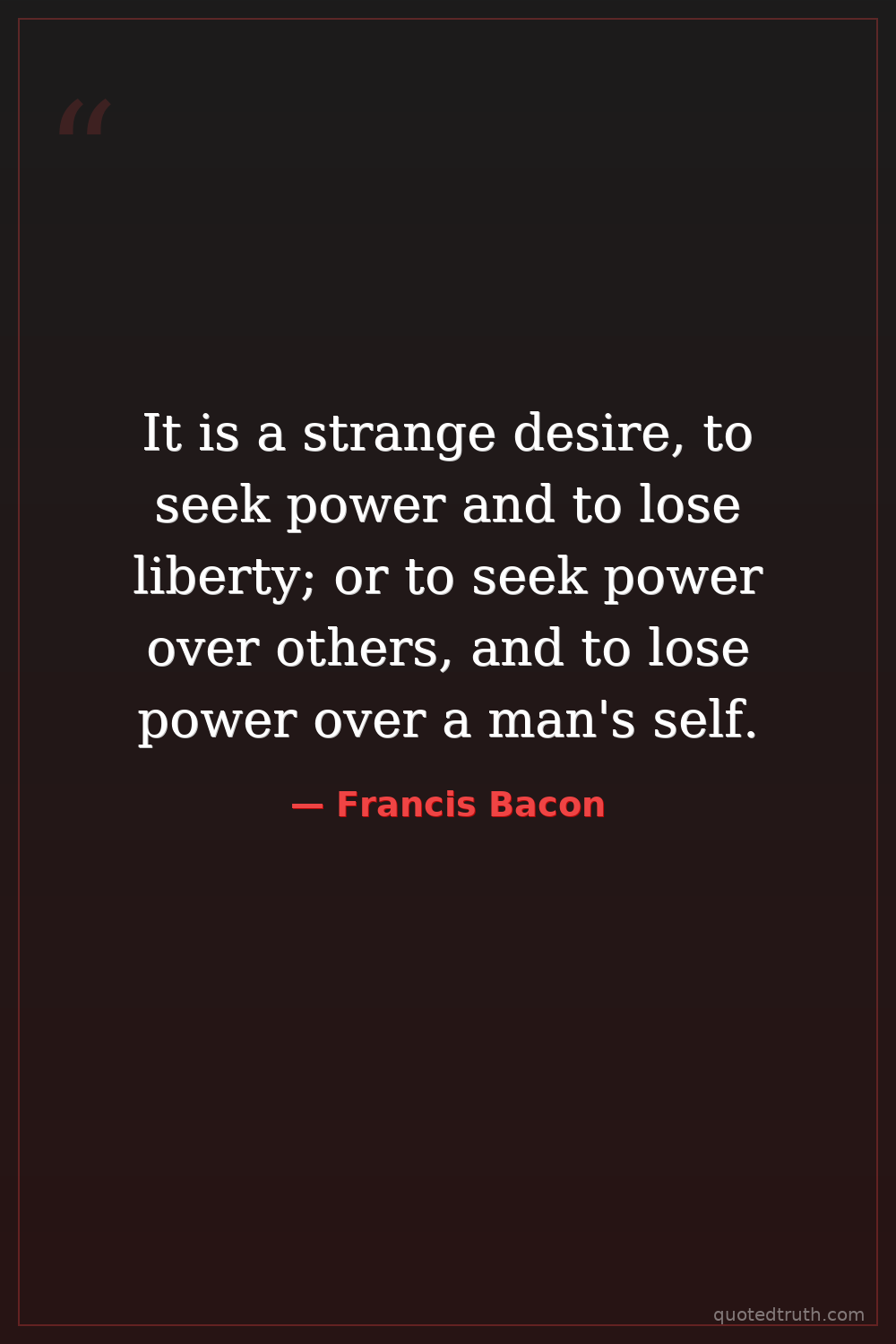 It is a strange desire, to seek power and to lose liberty; or to seek power over others, and to lose power over a man's self.