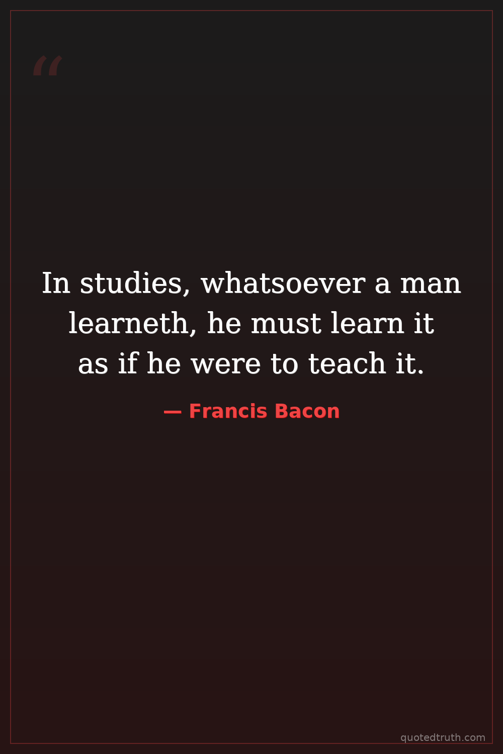 In studies, whatsoever a man learneth, he must learn it as if he were to teach it.