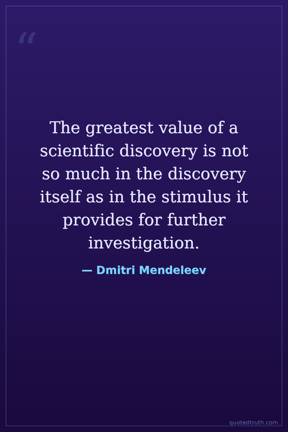 The greatest value of a scientific discovery is not so much in the discovery itself as in the stimulus it provides for further investigation.