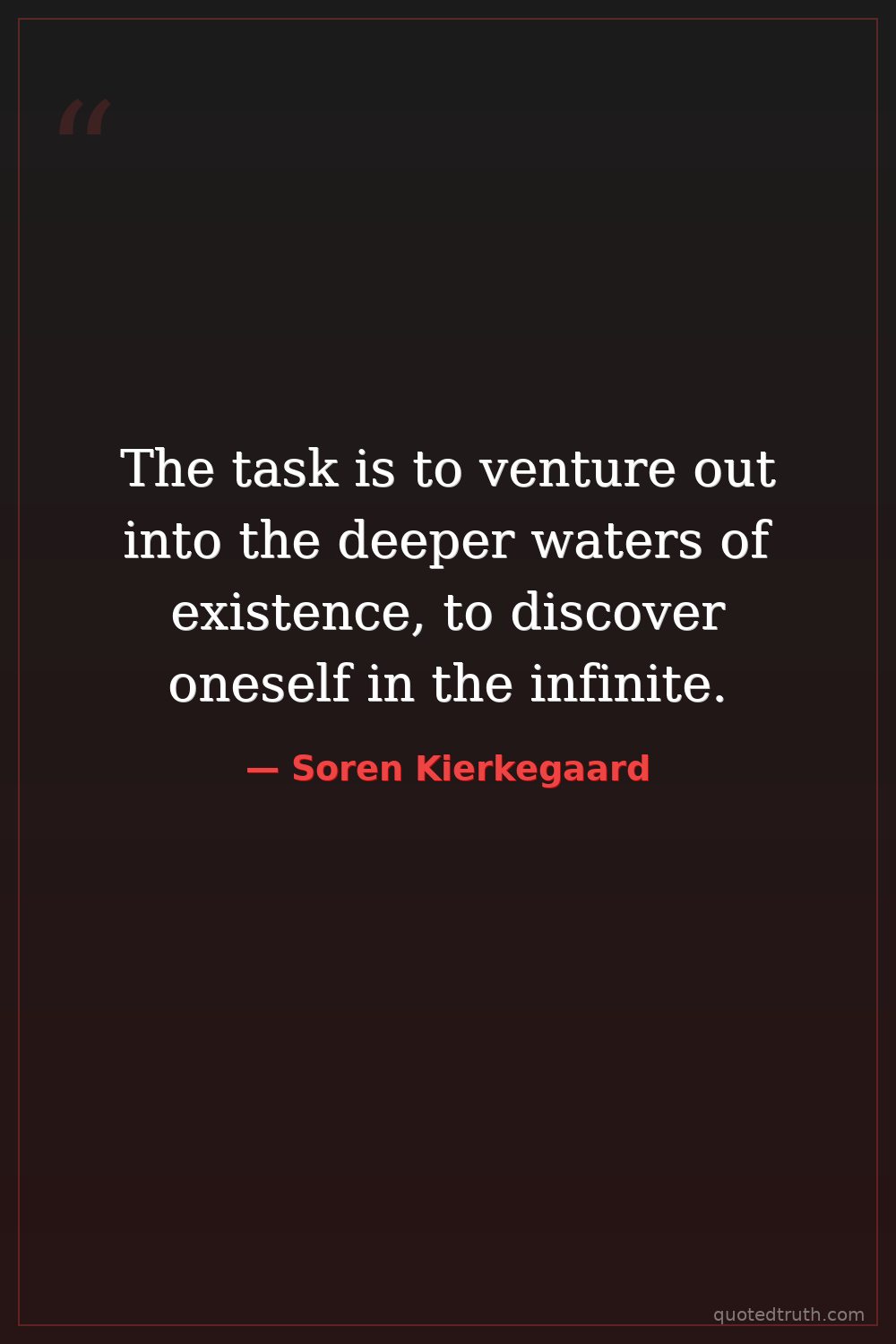 The task is to venture out into the deeper waters of existence, to discover oneself in the infinite.