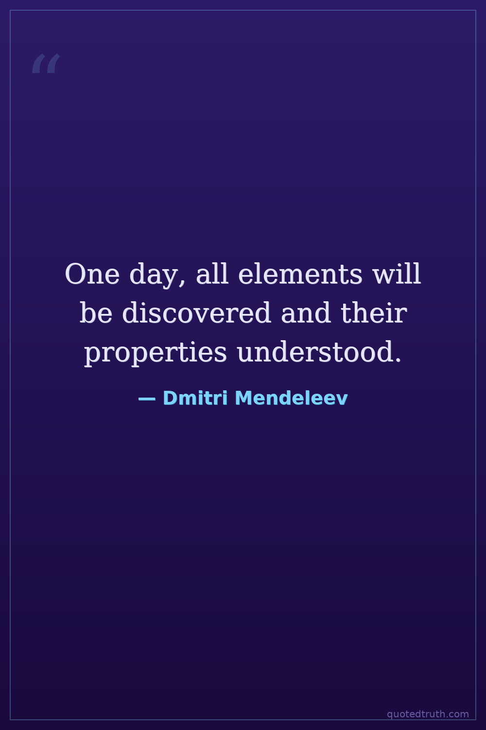 One day, all elements will be discovered and their properties understood.