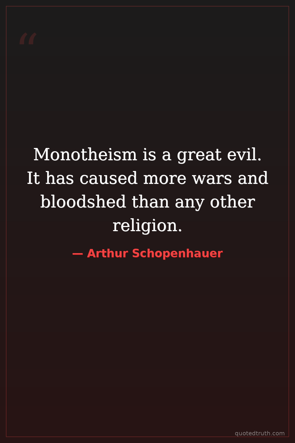 Monotheism is a great evil. It has caused more wars and bloodshed than any other religion.