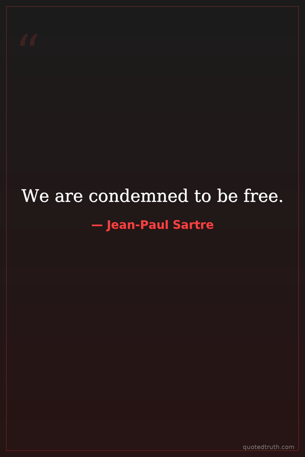 Shocking"Man is condemned to be free; because once thrown into the world, he is responsible for everything he does."