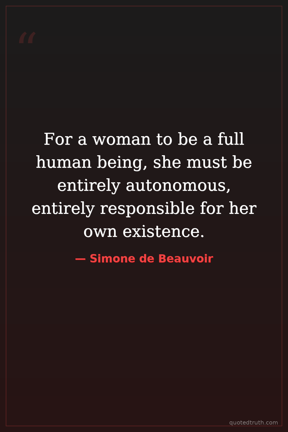 For a woman to be a full human being, she must be entirely autonomous, entirely responsible for her own existence.