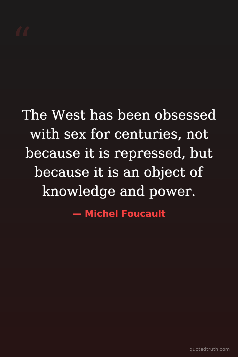The West has been obsessed with sex for centuries, not because it is repressed, but because it is an object of knowledge and power.