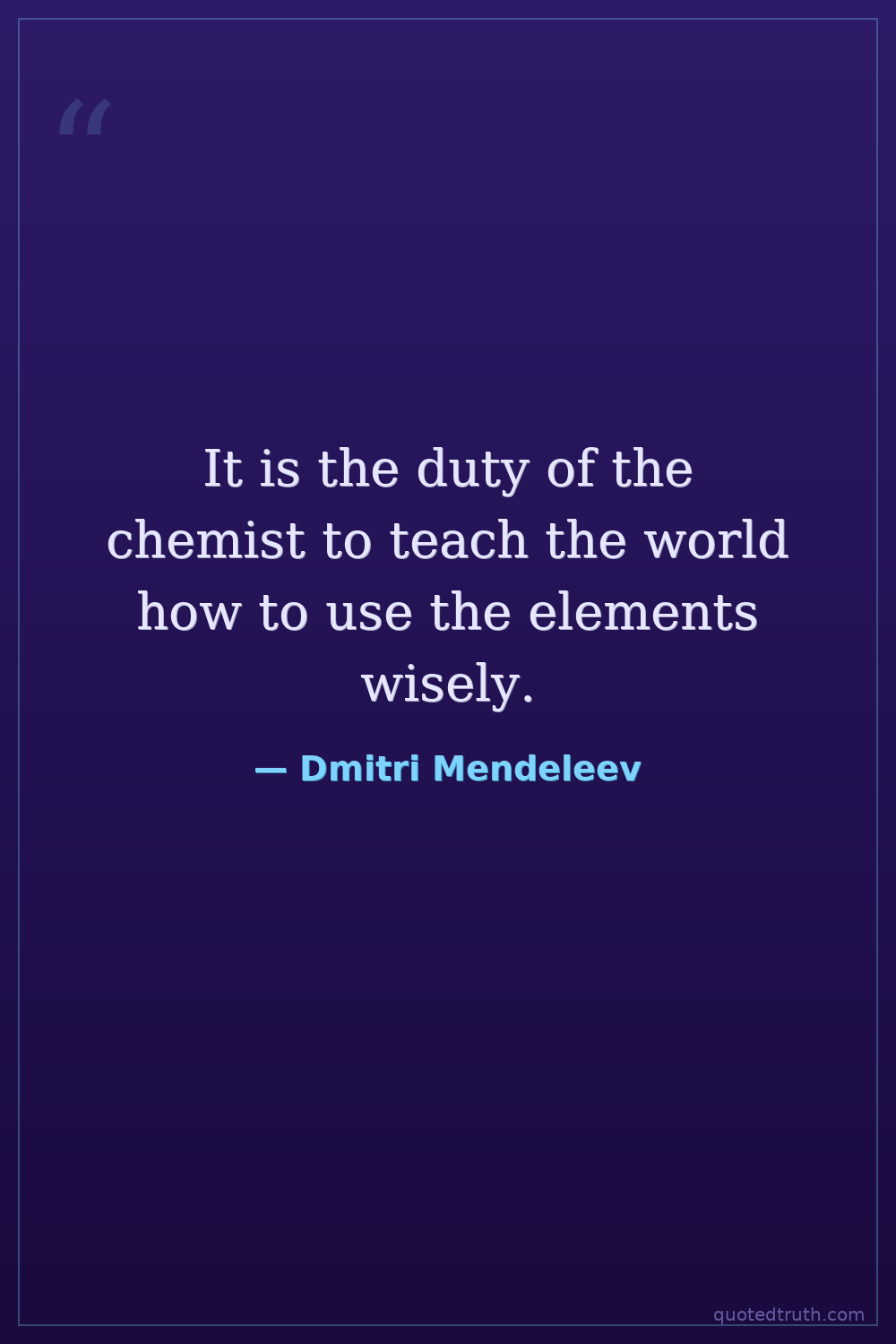 It is the duty of the chemist to teach the world how to use the elements wisely.
