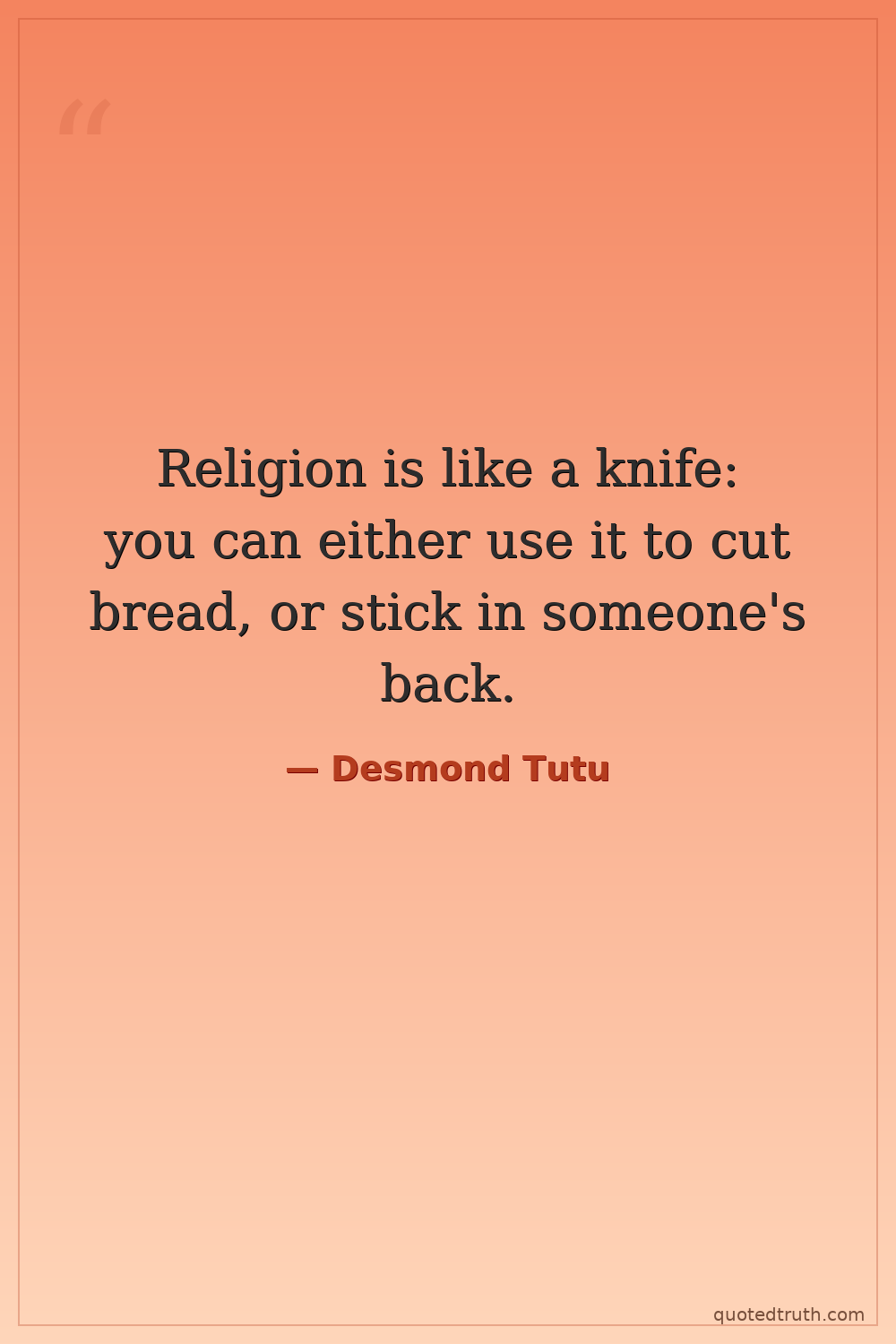 Religion is like a knife: you can either use it to cut bread, or stick in someone's back.