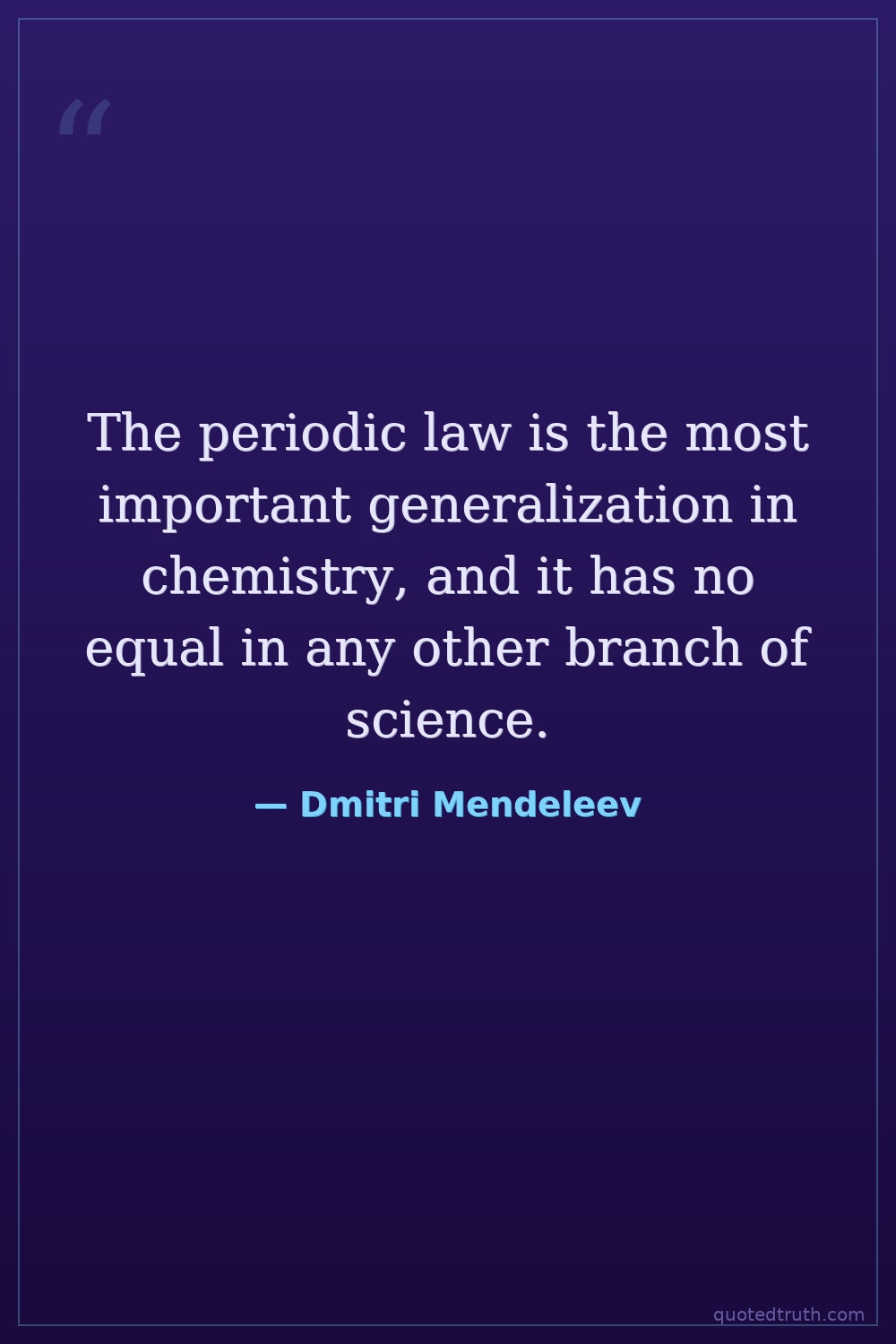 The periodic law is the most important generalization in chemistry, and it has no equal in any other branch of science.