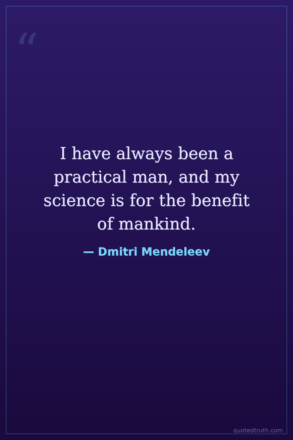 I have always been a practical man, and my science is for the benefit of mankind.
