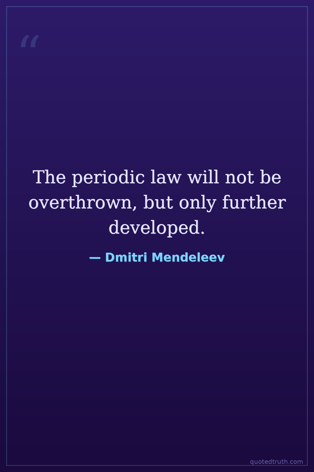 The periodic law will not be overthrown, but only further developed.