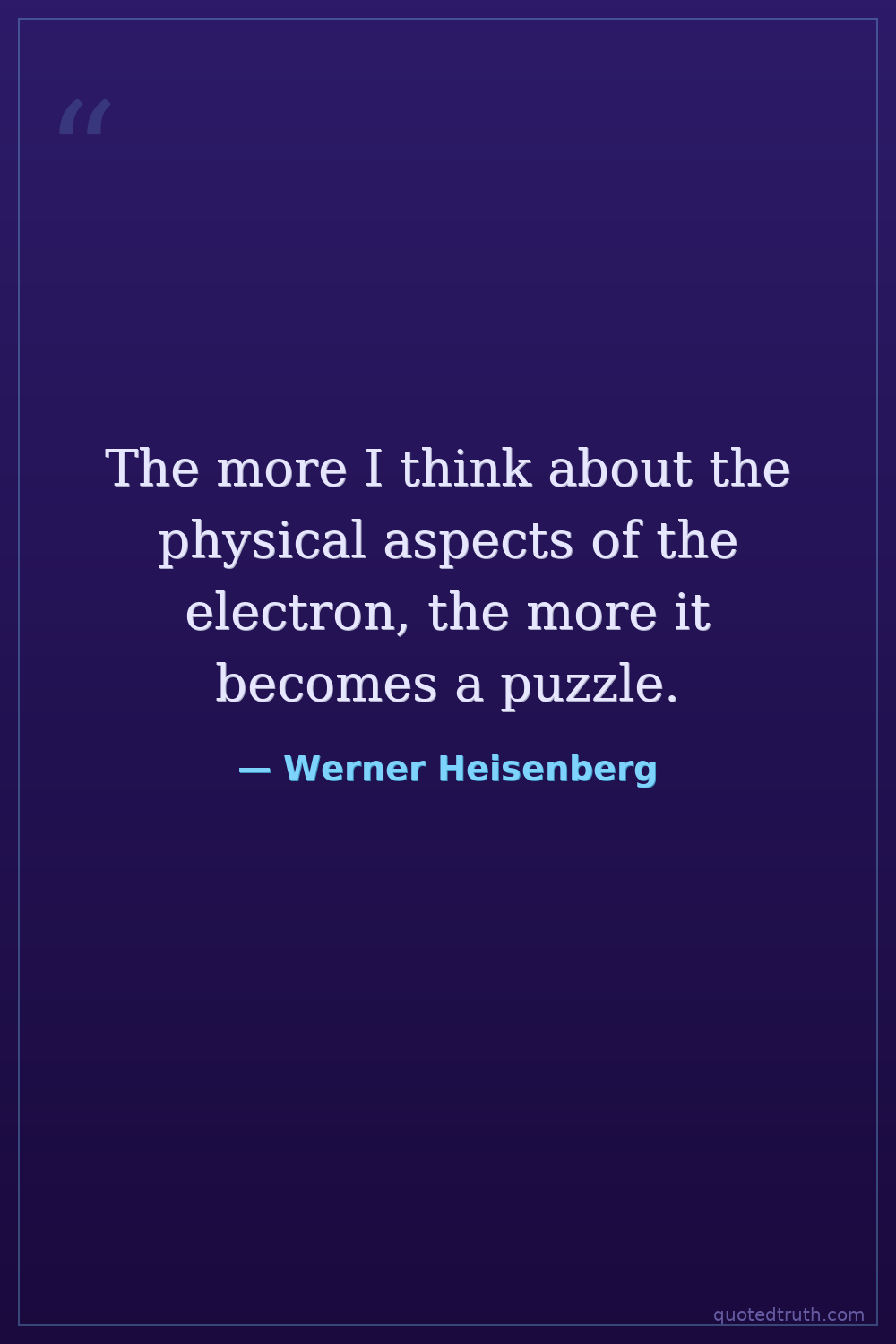 The more I think about the physical aspects of the electron, the more it becomes a puzzle.