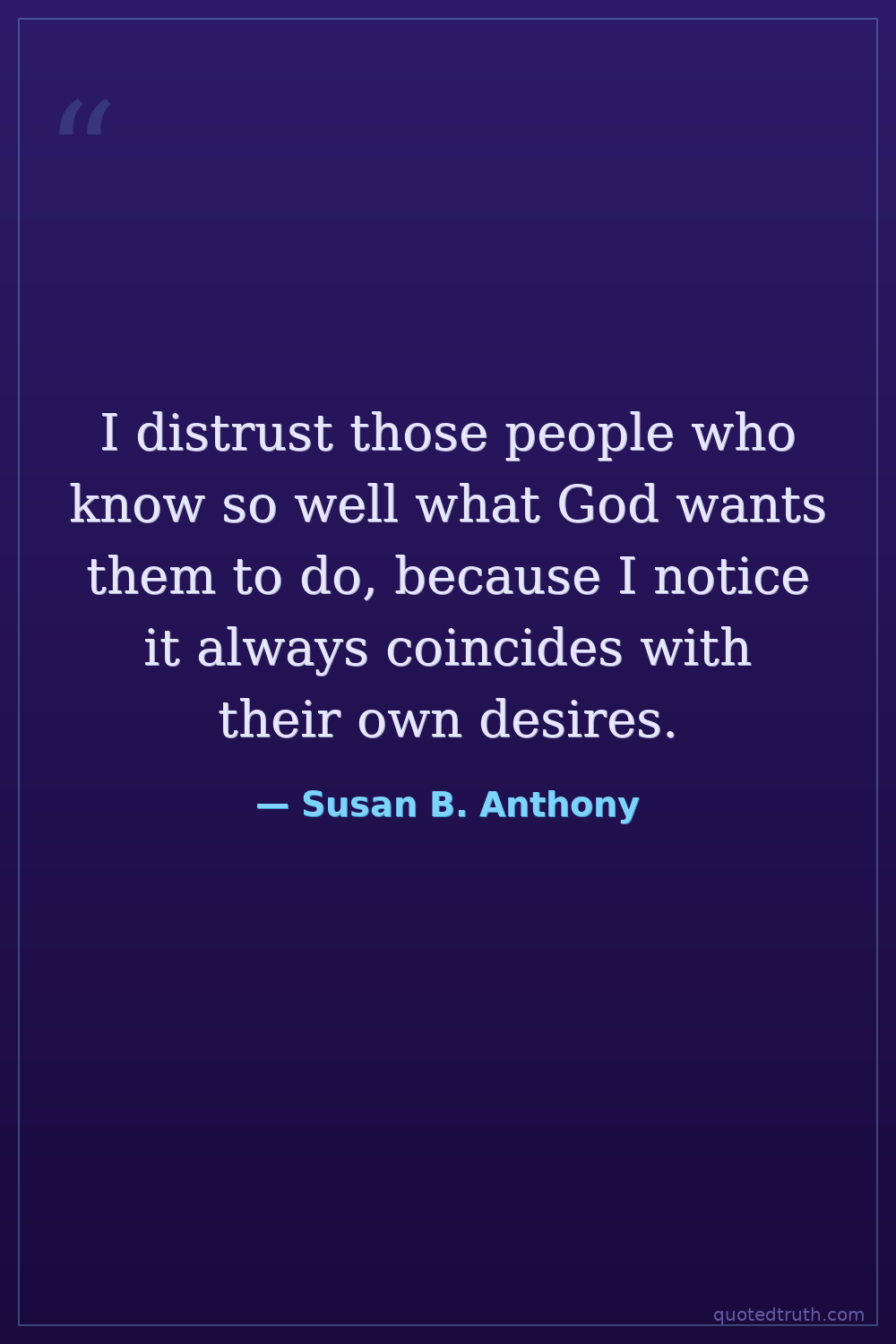 I distrust those people who know so well what God wants them to do, because I notice it always coincides with their own desires.