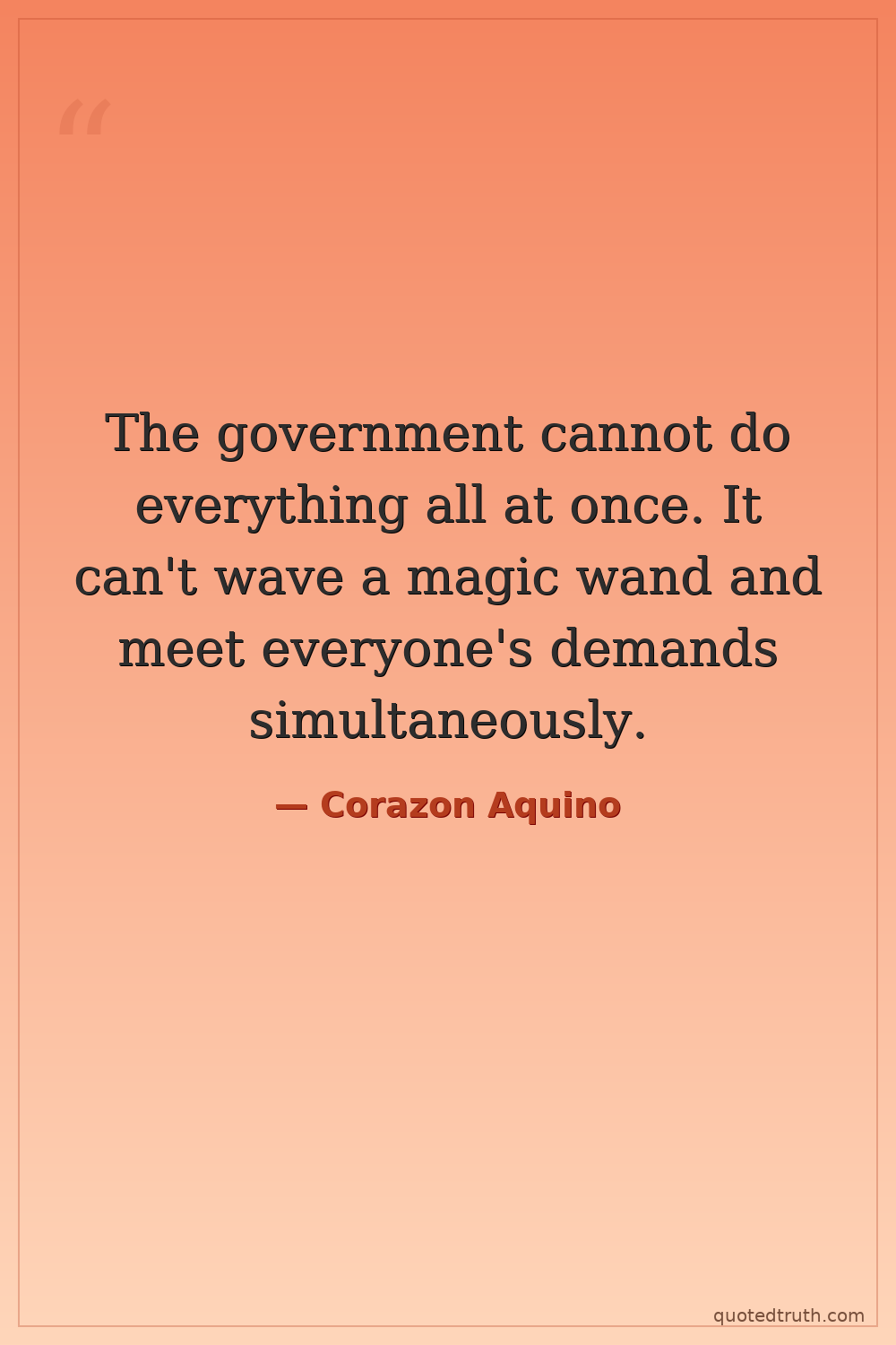 The government cannot do everything all at once. It can't wave a magic wand and meet everyone's demands simultaneously.