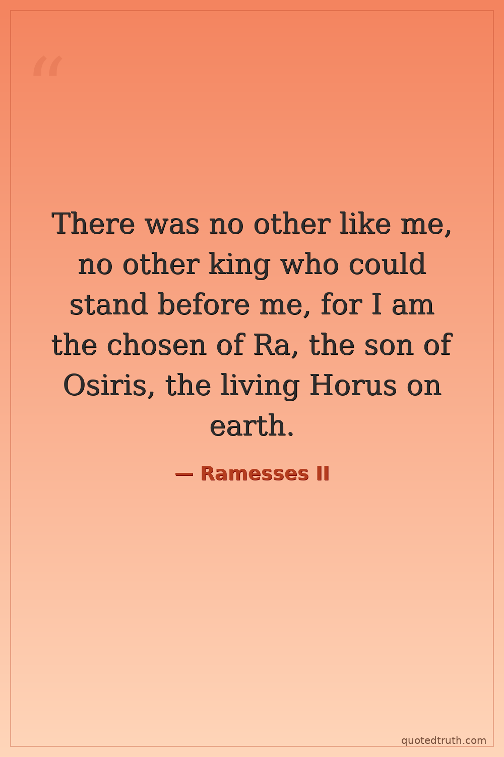 There was no other like me, no other king who could stand before me, for I am the chosen of Ra, the son of Osiris, the living Horus on earth.