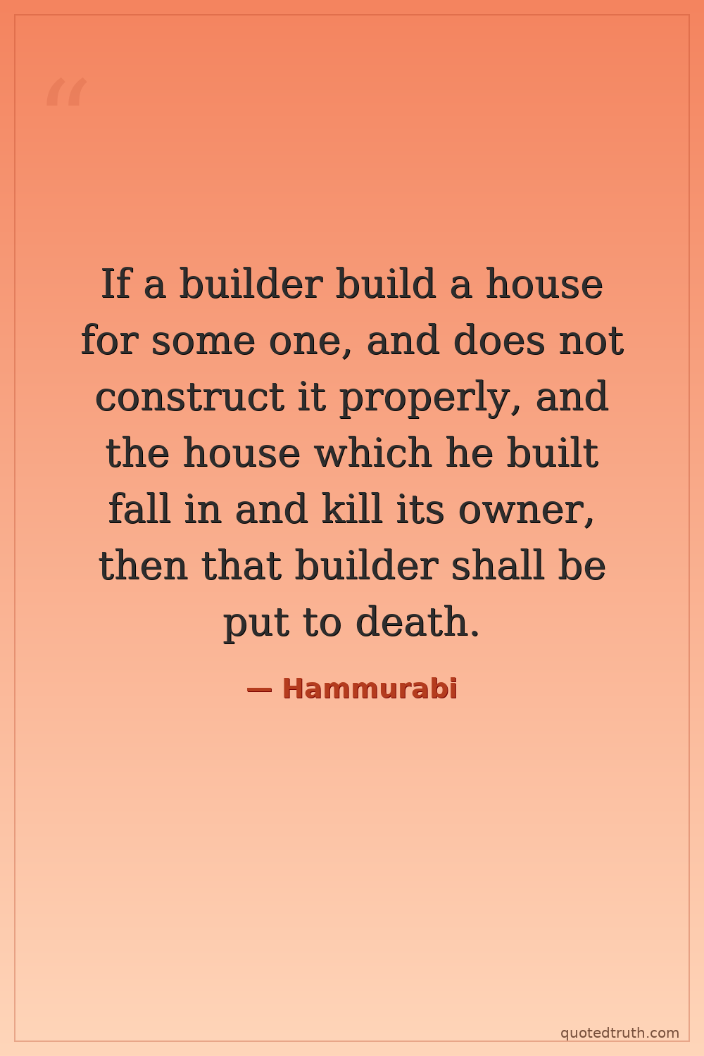 If a builder build a house for some one, and does not construct it properly, and the house which he built fall in and kill its owner, then that builder shall be put to death.
