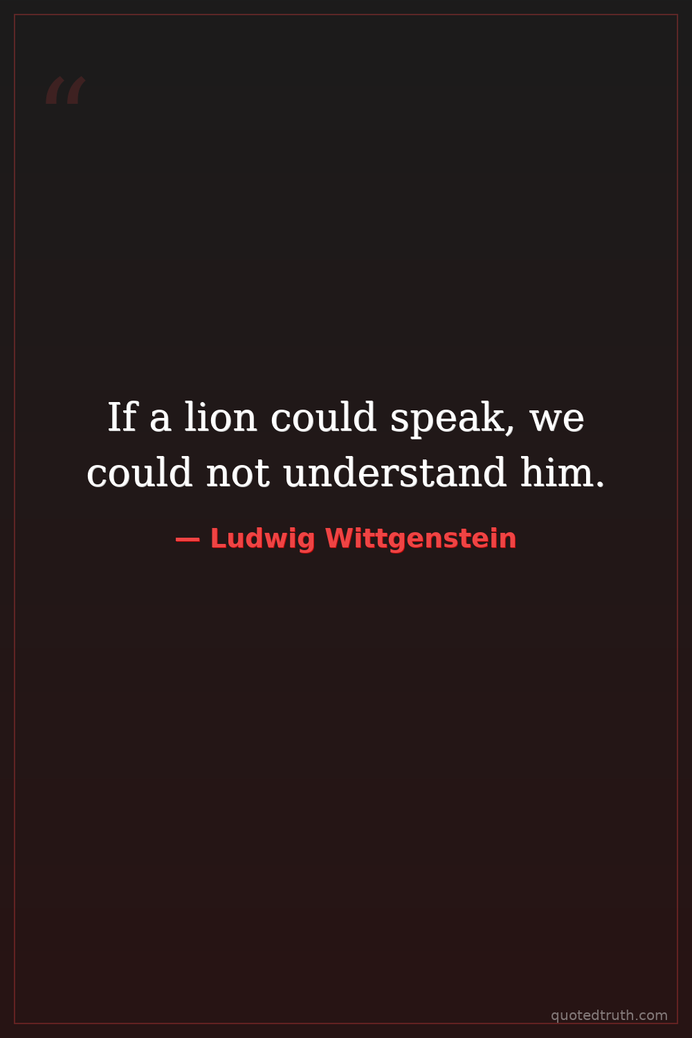 If a lion could speak, we could not understand him.