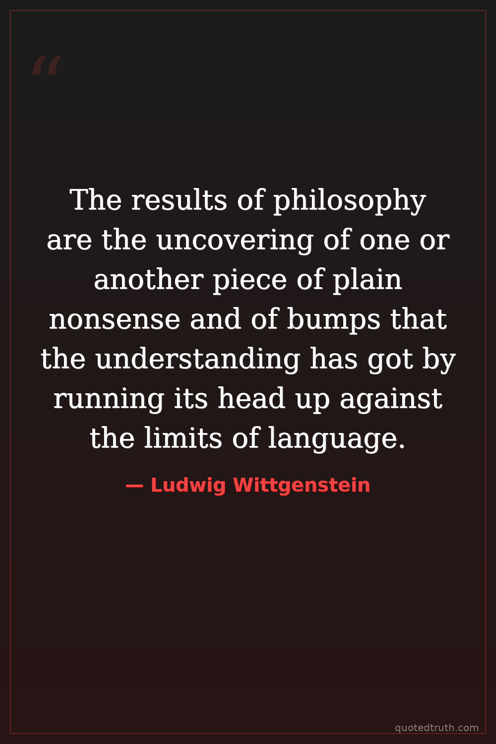 The results of philosophy are the uncovering of one or another piece of plain nonsense and of bumps that the understanding has got by running its head up against the limits of language.