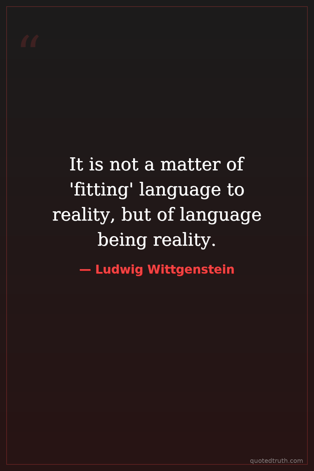 It is not a matter of 'fitting' language to reality, but of language being reality.