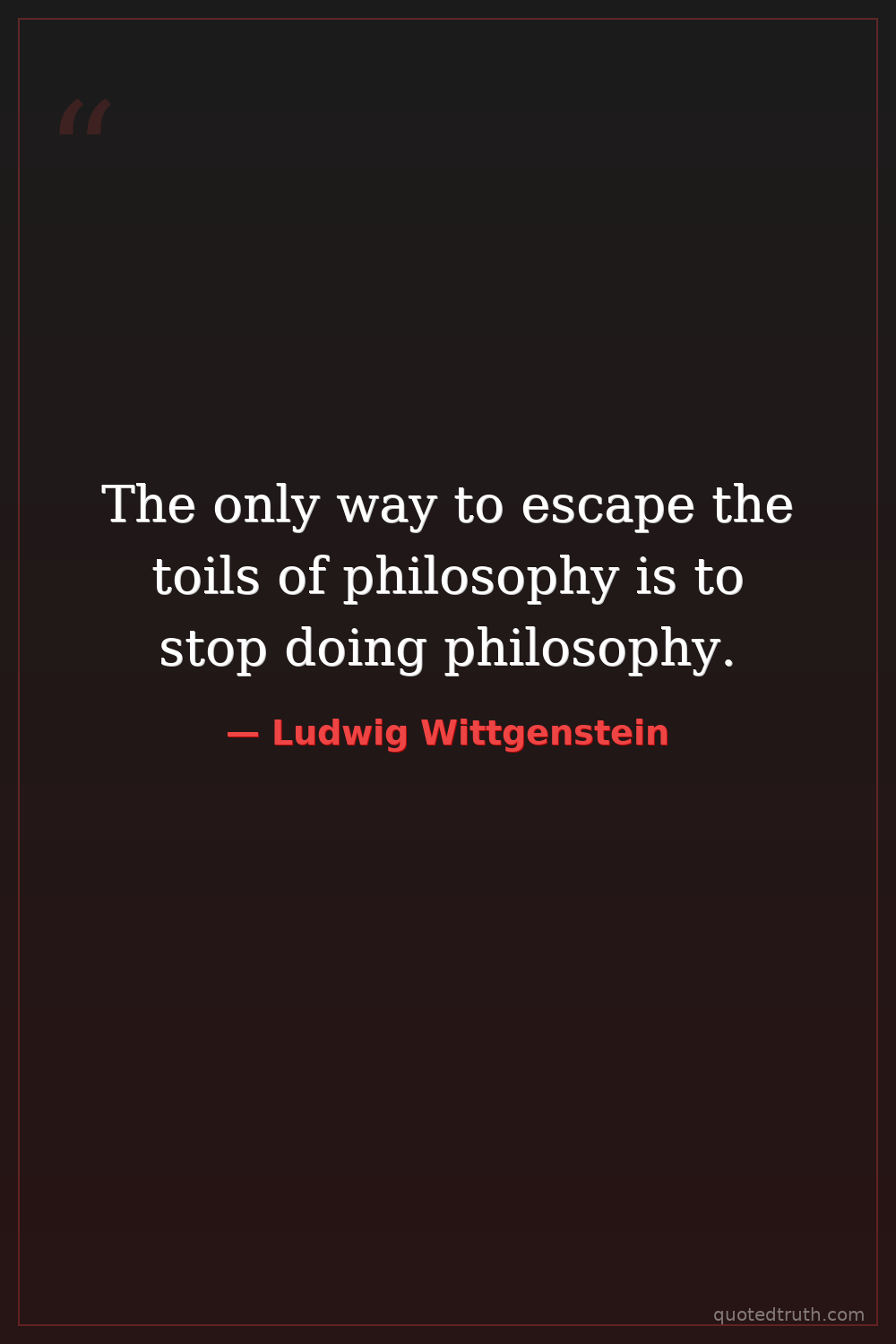 The only way to escape the toils of philosophy is to stop doing philosophy.