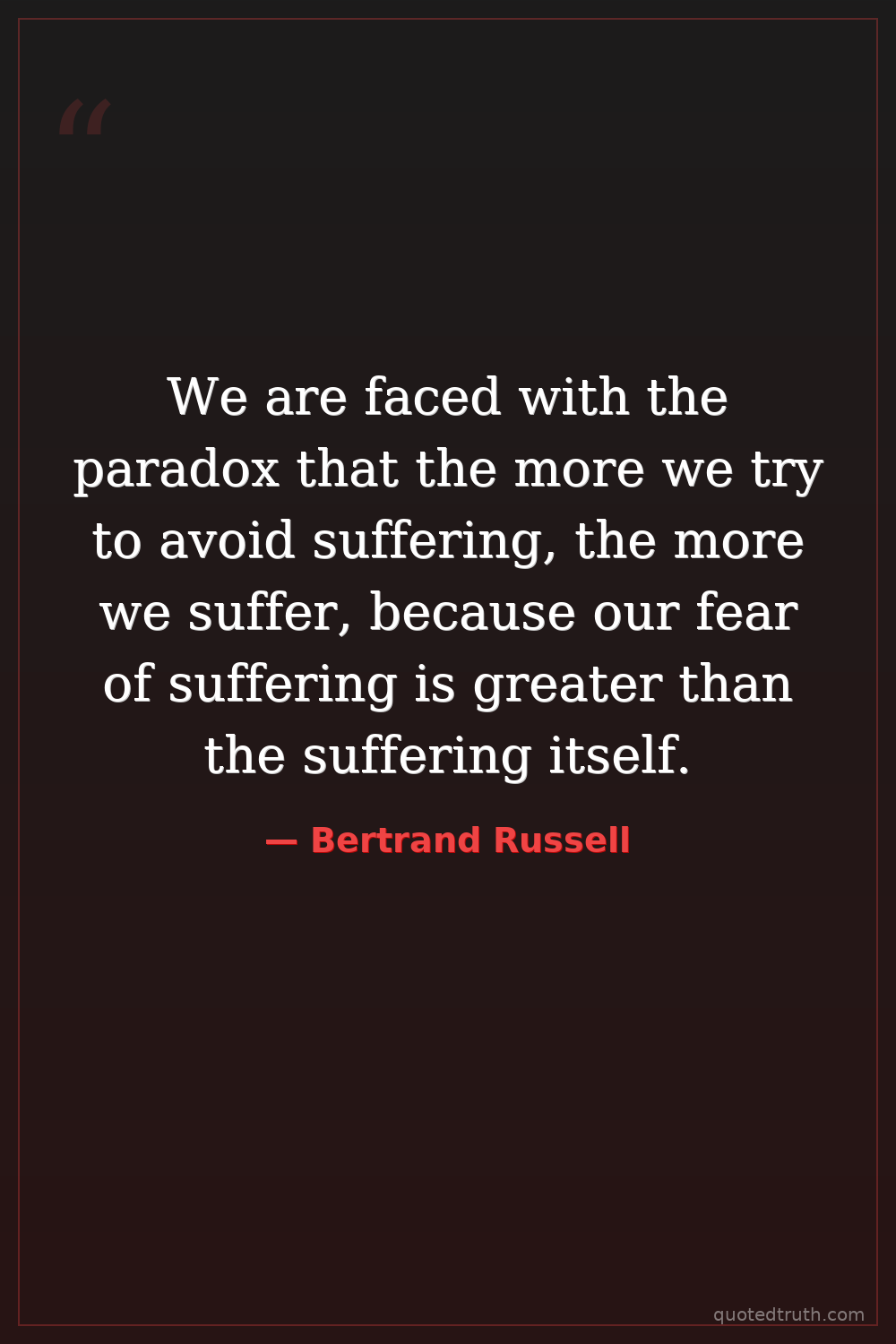 We are faced with the paradox that the more we try to avoid suffering, the more we suffer, because our fear of suffering is greater than the suffering itself.