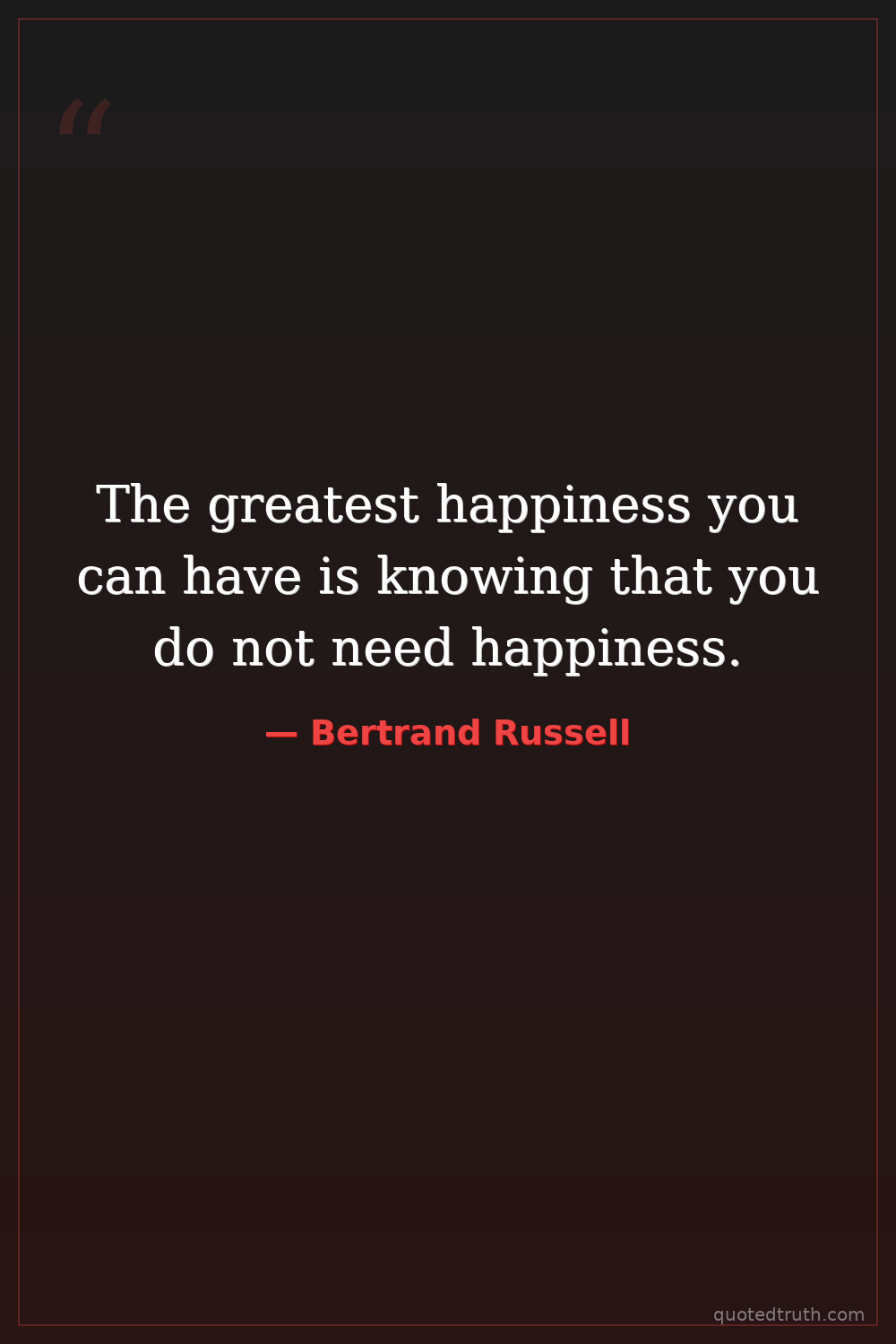 The greatest happiness you can have is knowing that you do not need happiness.