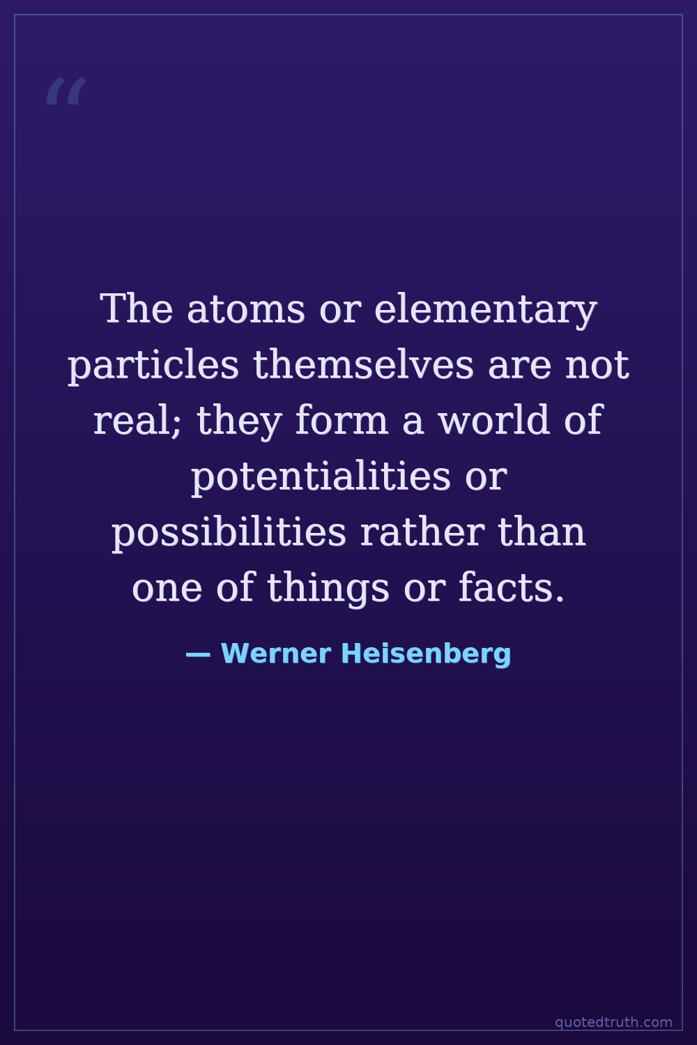 The atoms or elementary particles themselves are not real; they form a world of potentialities or possibilities rather than one of things or facts.