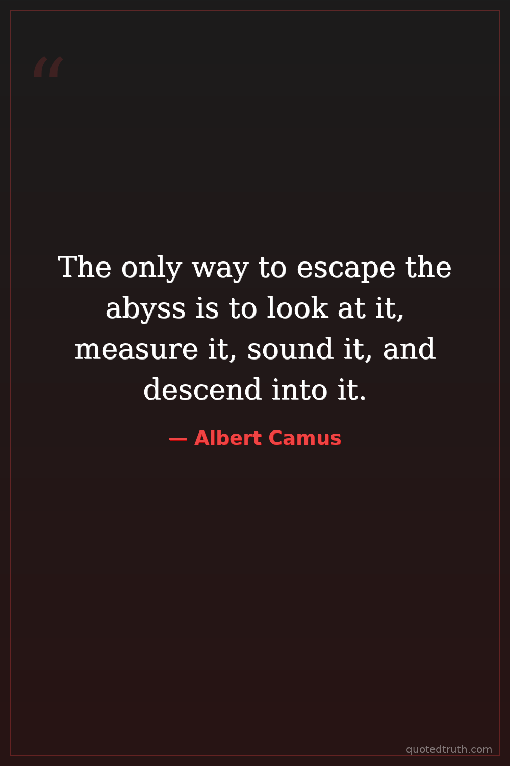 The only way to escape the abyss is to look at it, measure it, sound it, and descend into it.