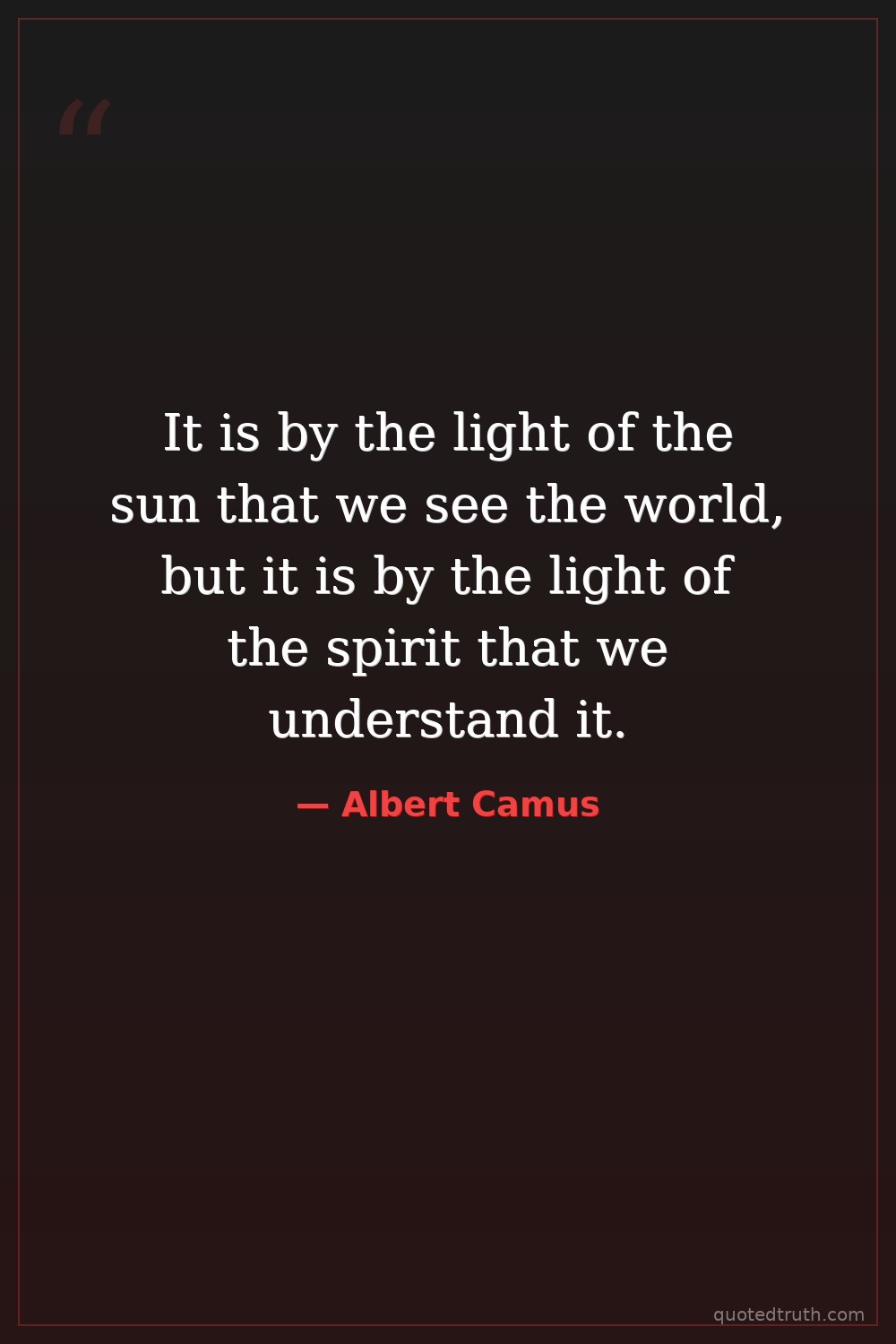 It is by the light of the sun that we see the world, but it is by the light of the spirit that we understand it.