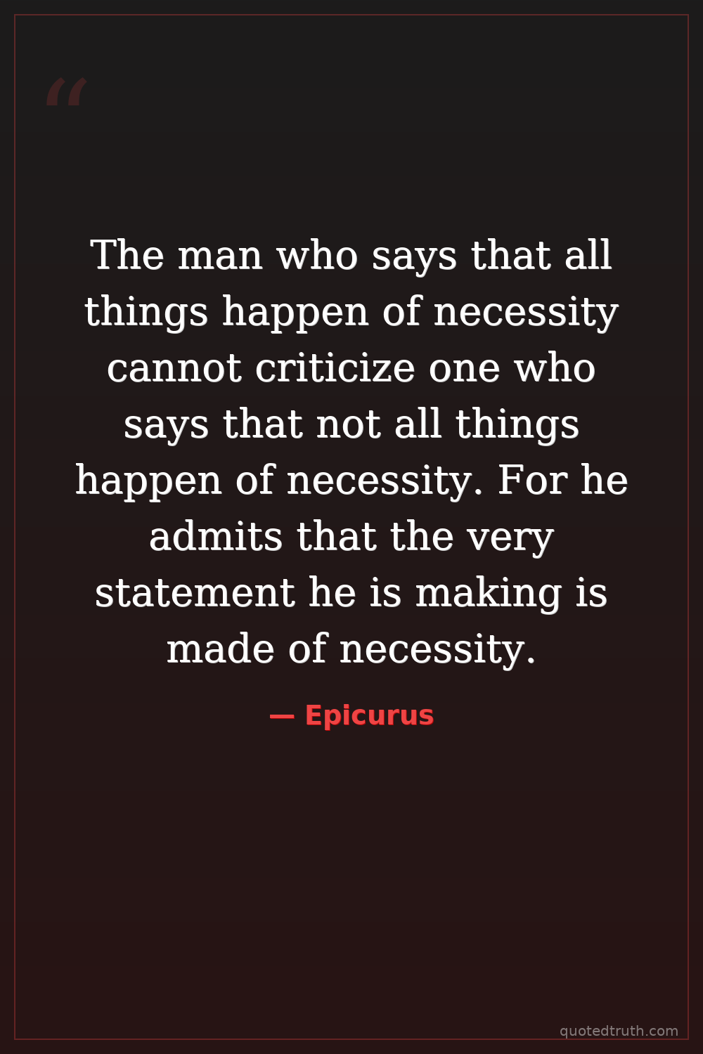 The man who says that all things happen of necessity cannot criticize one who says that not all things happen of necessity. For he admits that the very statement he is making is made of necessity.