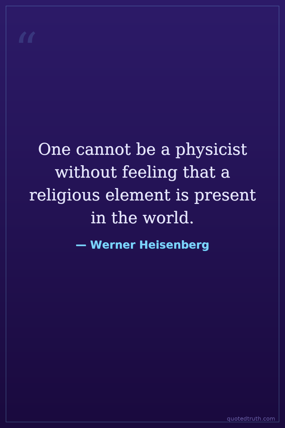 One cannot be a physicist without feeling that a religious element is present in the world.