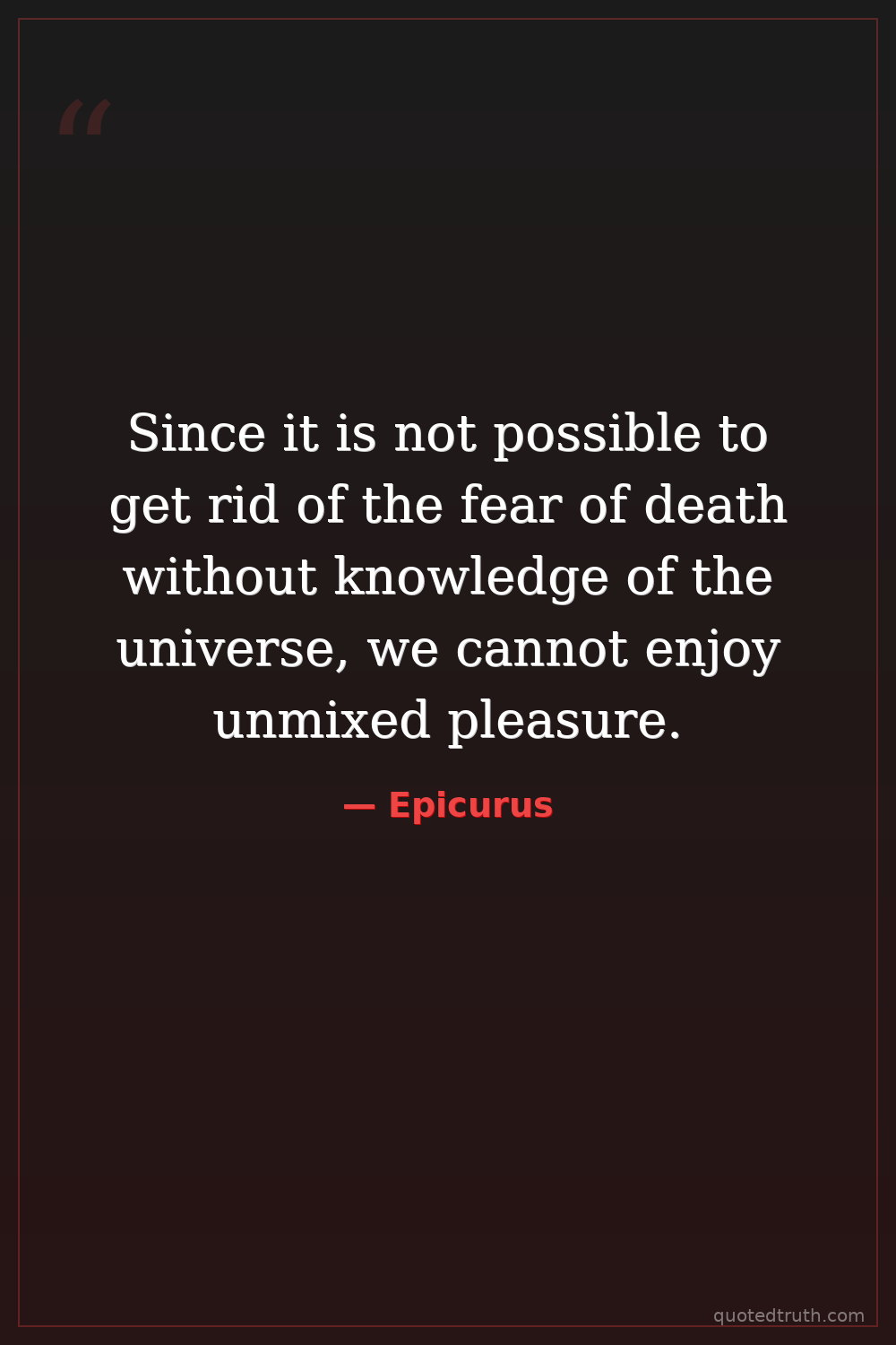 Shocking"It is not possible to dispel the fear of the most important things unless one understands the whole nature of the universe."