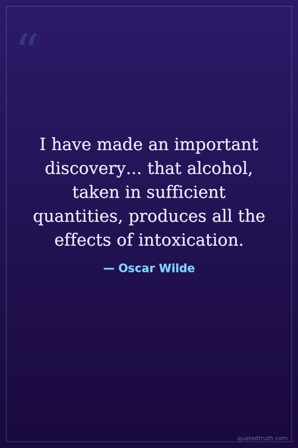 I have made an important discovery... that alcohol, taken in sufficient quantities, produces all the effects of intoxication.