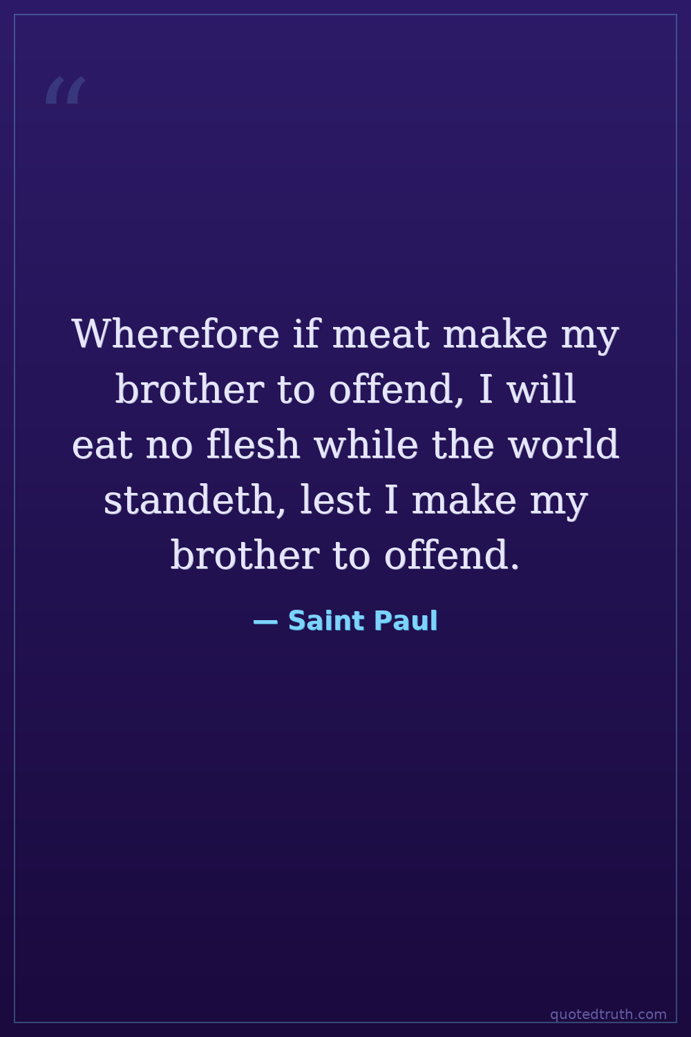 Wherefore if meat make my brother to offend, I will eat no flesh while the world standeth, lest I make my brother to offend.