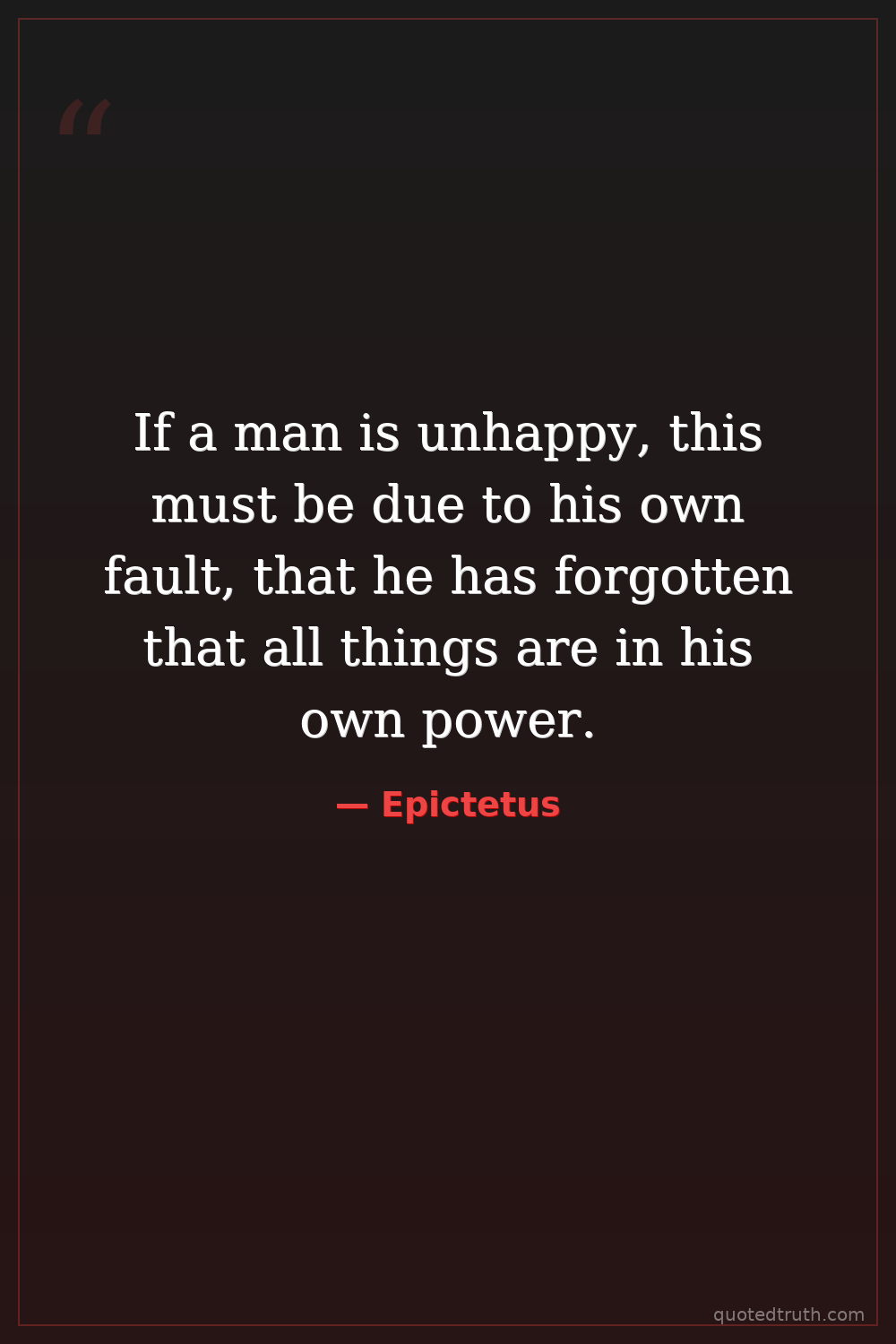 If a man is unhappy, this must be due to his own fault, that he has forgotten that all things are in his own power.