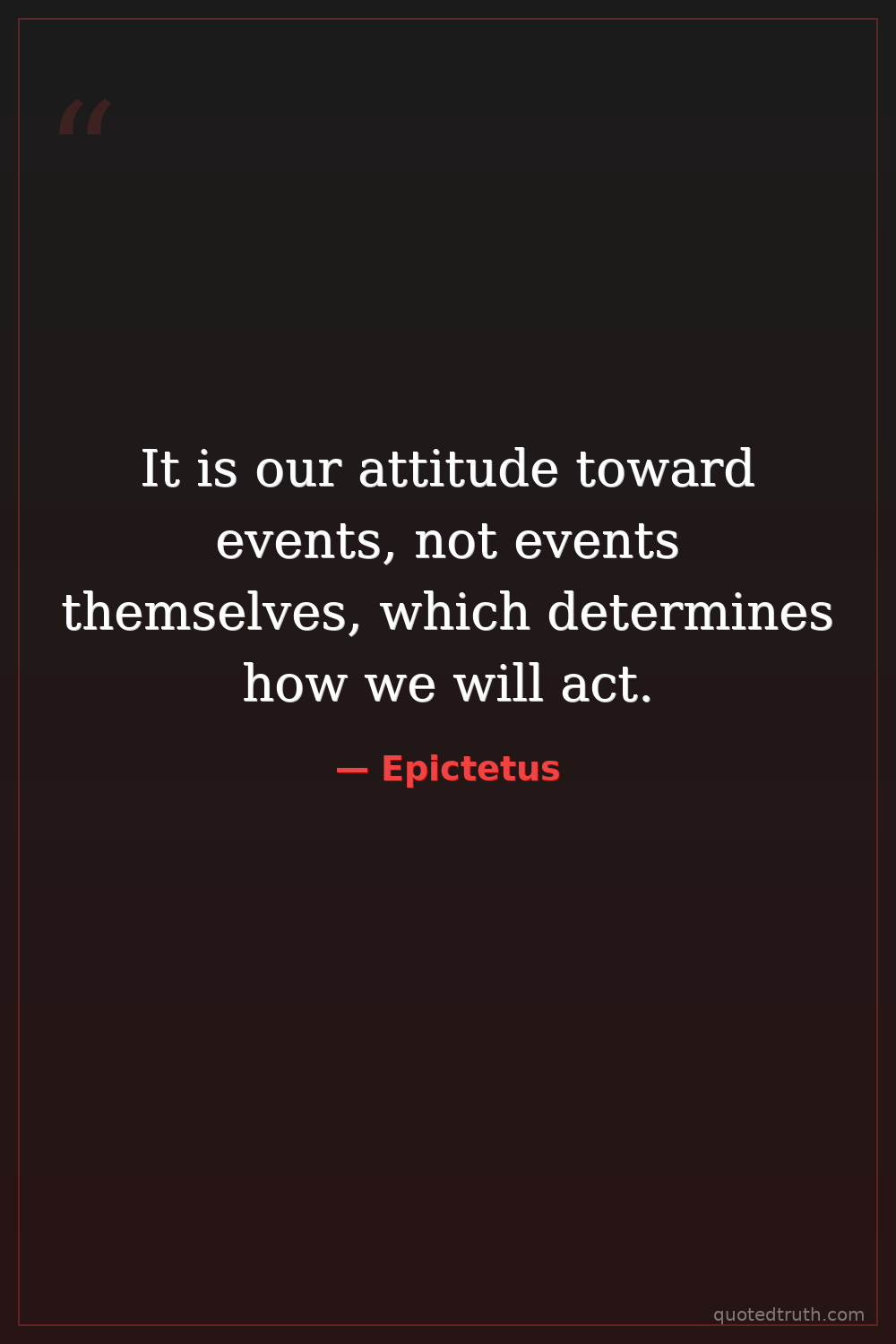 It is our attitude toward events, not events themselves, which determines how we will act.