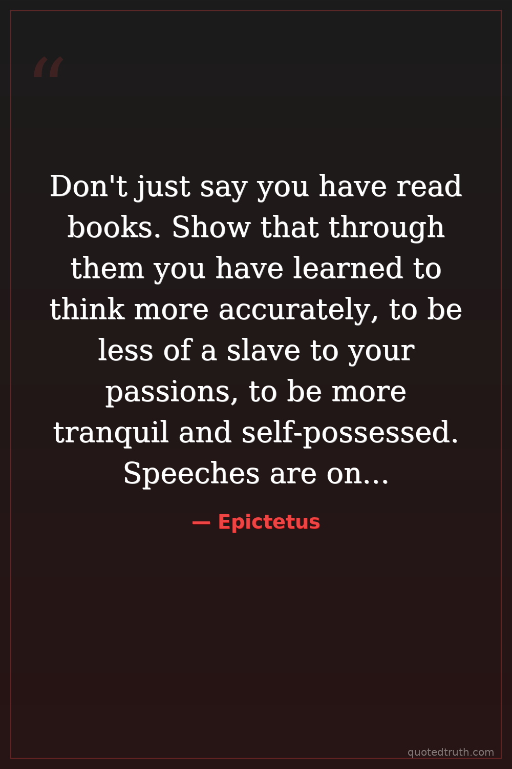 Don't just say you have read books. Show that through them you have learned to think more accurately, to be less of a slave to your passions, to be more tranquil and self-possessed. Speeches are one thing, life another.