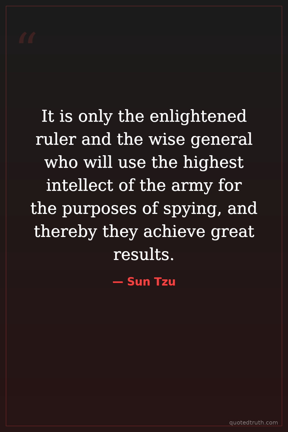 It is only the enlightened ruler and the wise general who will use the highest intellect of the army for the purposes of spying, and thereby they achieve great results.